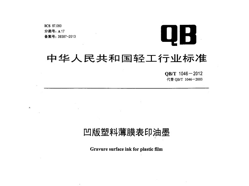 凹版塑料薄膜表印油墨 QB/T 1046-2012 |