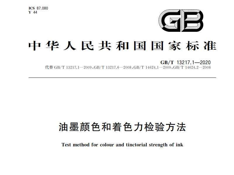 油墨顏色和著色力檢驗方法 GB/T 13217.1-2020 |
